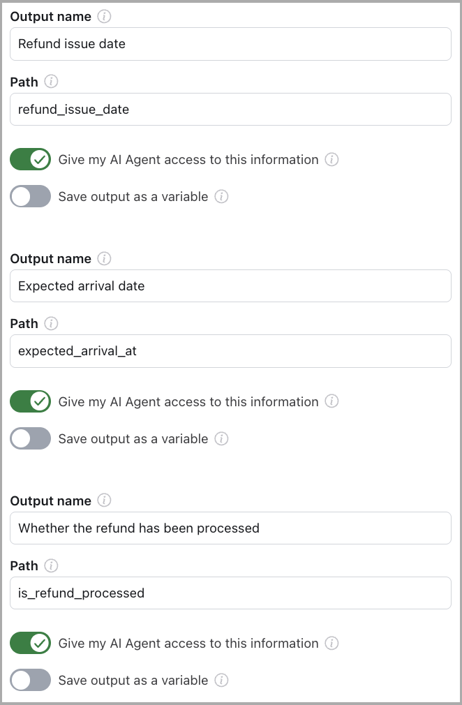 By integrating real-time refund data, the Agent can answer this question confidently and completely—saving your team time and improving the customer experience in a moment that often leads to frustration.