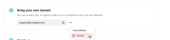 - Follow the BYOD flow from the beginning to enter the new domain you’d like your AI Agent to respond on behalf of.