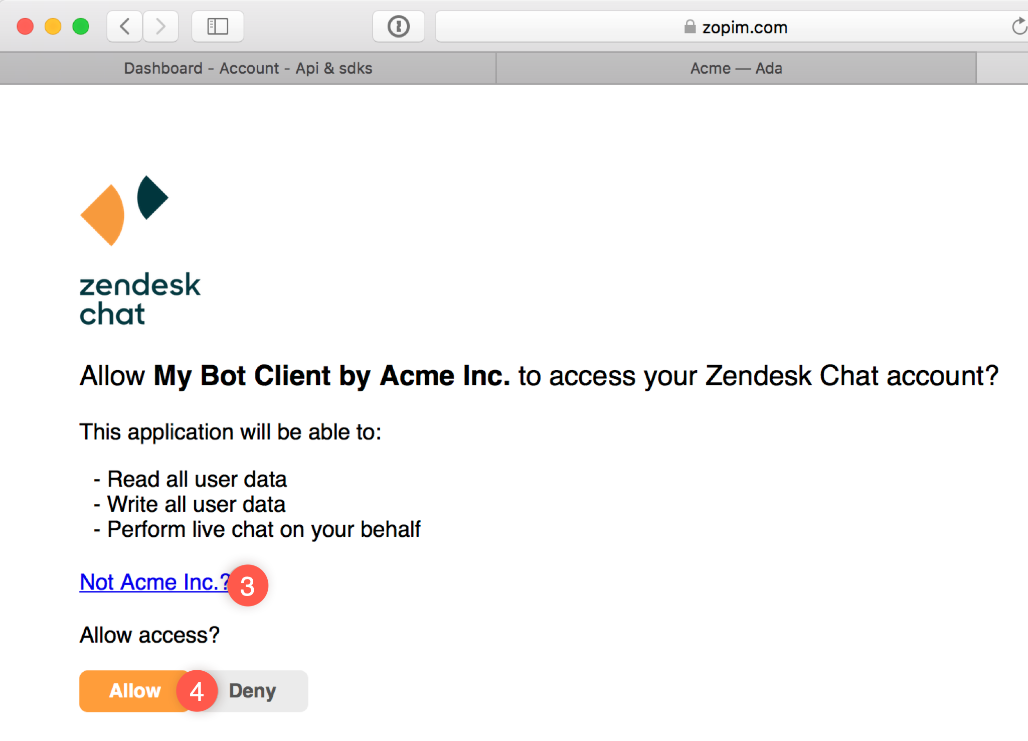 Click Allow to add your Agent to Ada automatically.