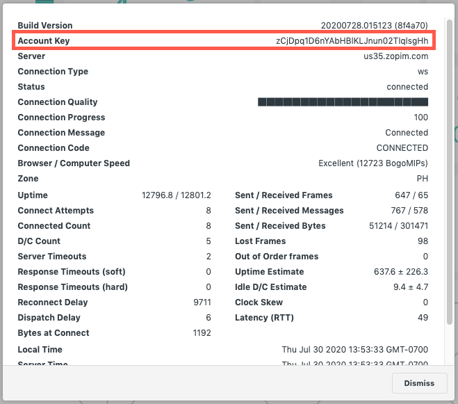 If your account key isn’t available in the above dialog, you can also access it by simulating a conversation. There are a few ways to do this from the Zendesk Chat dashboard: