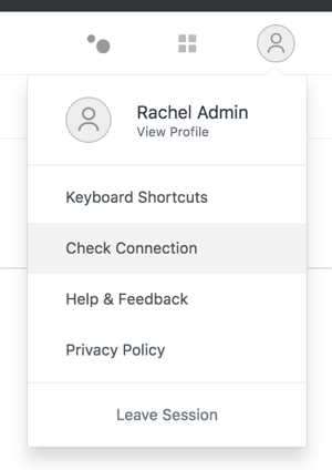In the top right corner of your Zendesk Chat screen, click your user avatar, then click Check Connection.