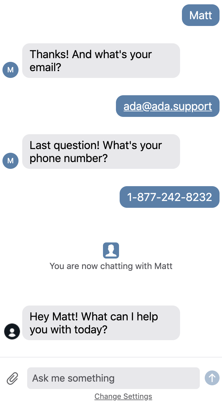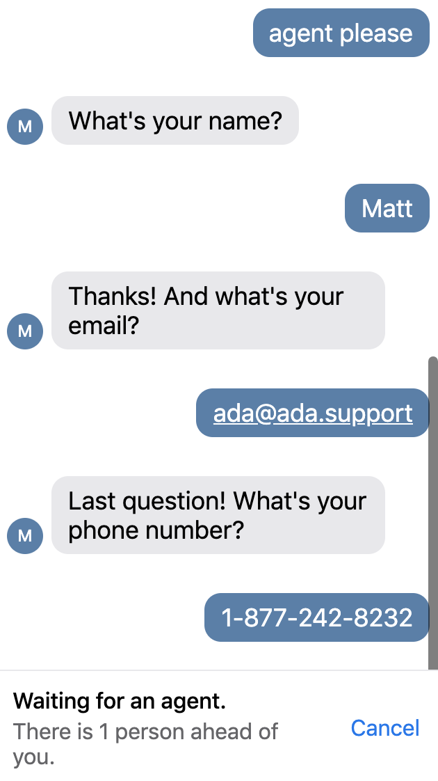 With Transcript Summaries, Ada can automatically attach a summary of a customer’s conversation to a handoff transcript. This summary helps human support agents quickly determine the reason for the escalation.