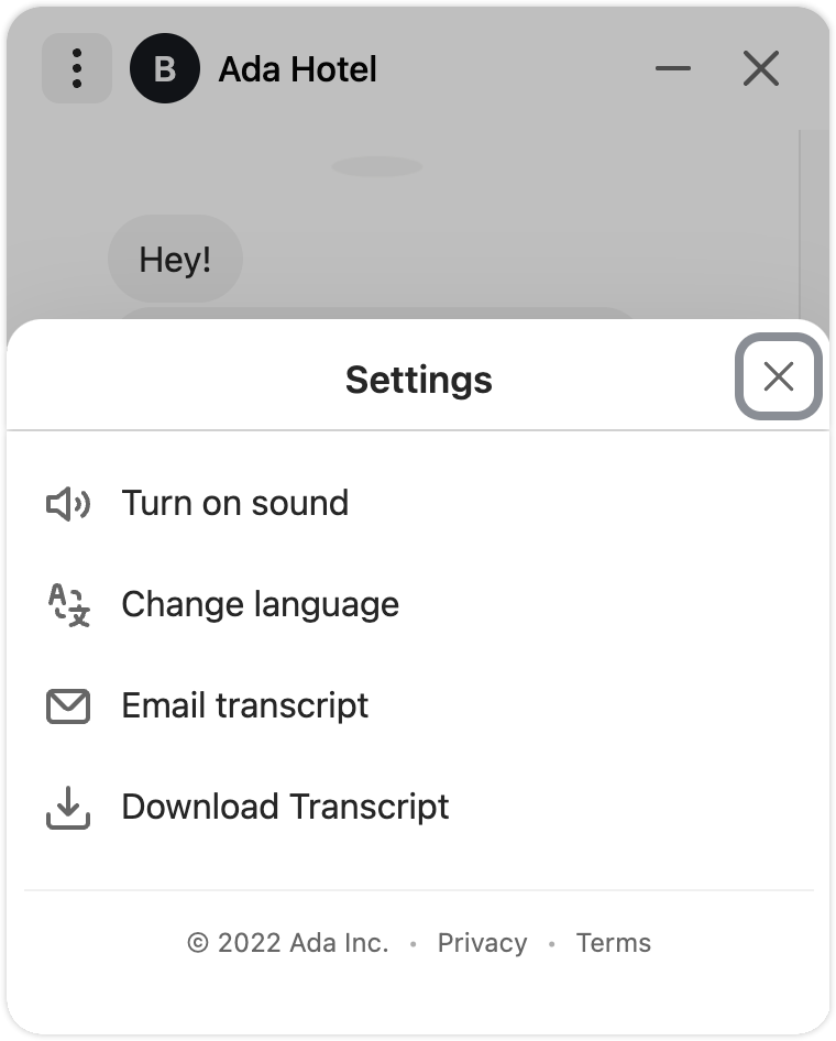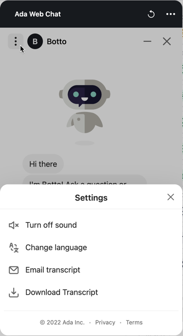After configuring and embedding the Chat widget, your end users can make the experience their own. They can adjust chat settings to match their preferences and use features like transcripts to keep track of their conversations.