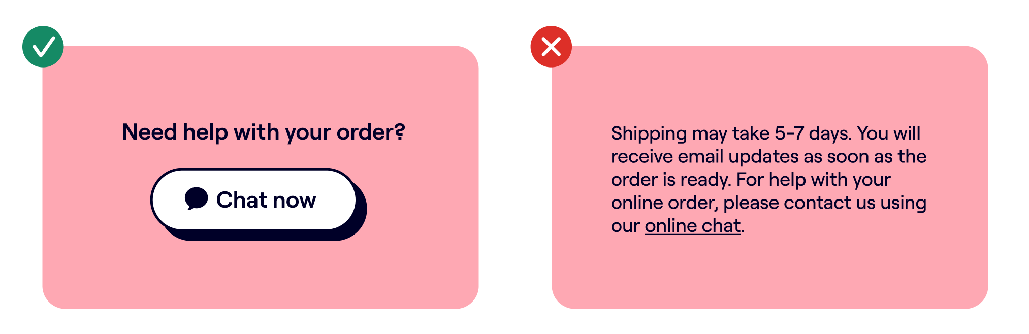 Clearly communicate the concepts of customer assistance and online chat through design and messaging. Avoid content that is ambiguous or appears too much like advertising.
