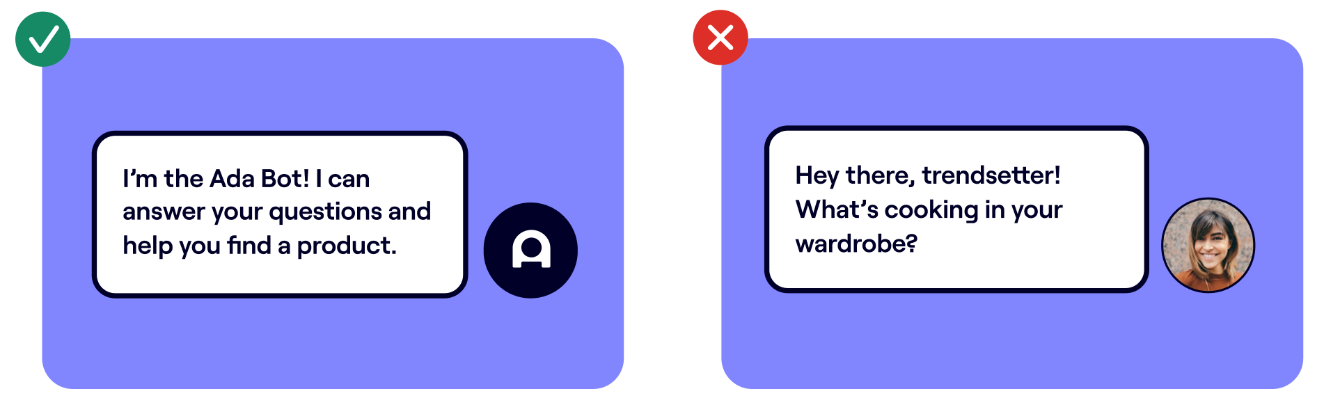 Branding your bot can make the chat experience feel personalized, polished, and fun, but the wrong branding can run the risk of confusing customers. With your branding, it’s important to: