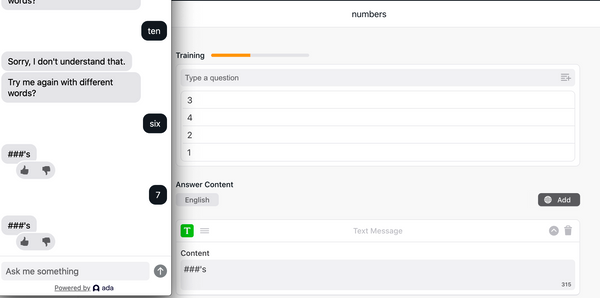 Our models are not optimized for training on numbers and special characters, but they do have some awareness and ability to make predictions on them. Having only one Answer that is trained with numbers can potentially negatively impact training since users may use numbers frequently to refer to a variety of things. Include numbers in your training where the would naturally occur.
