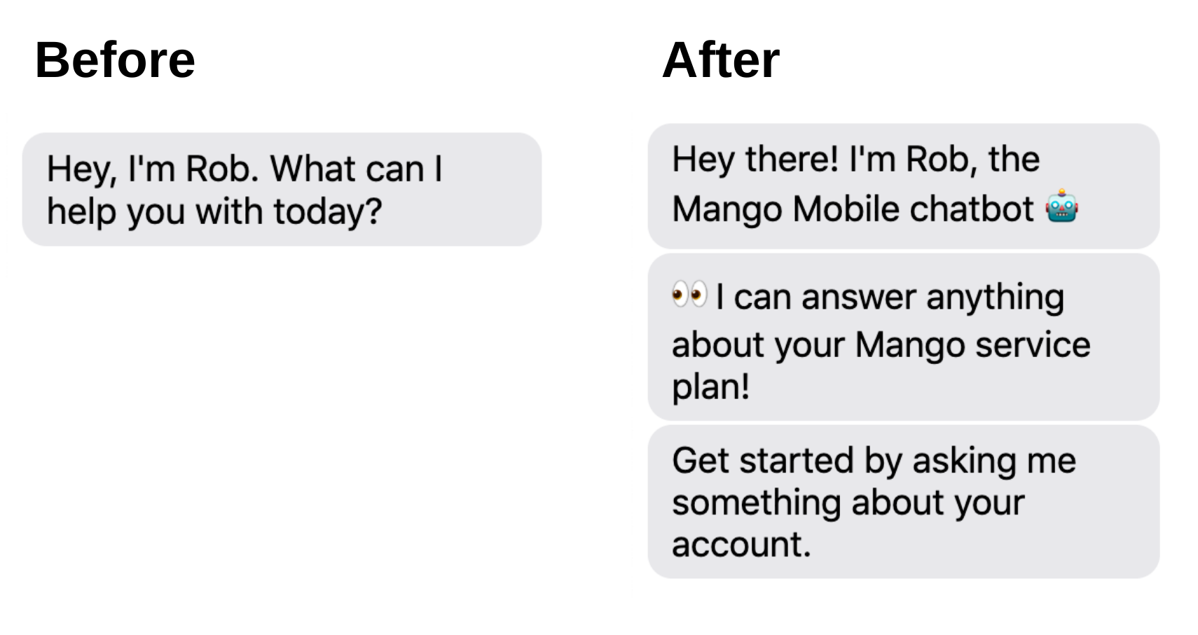 It’s important to maintain a level of consistency in your bot’s content and tone of voice. If a customer feels like the bot’s personality is inconsistent, they may be less inclined to trust what it is saying, leading to a poor customer service experience.