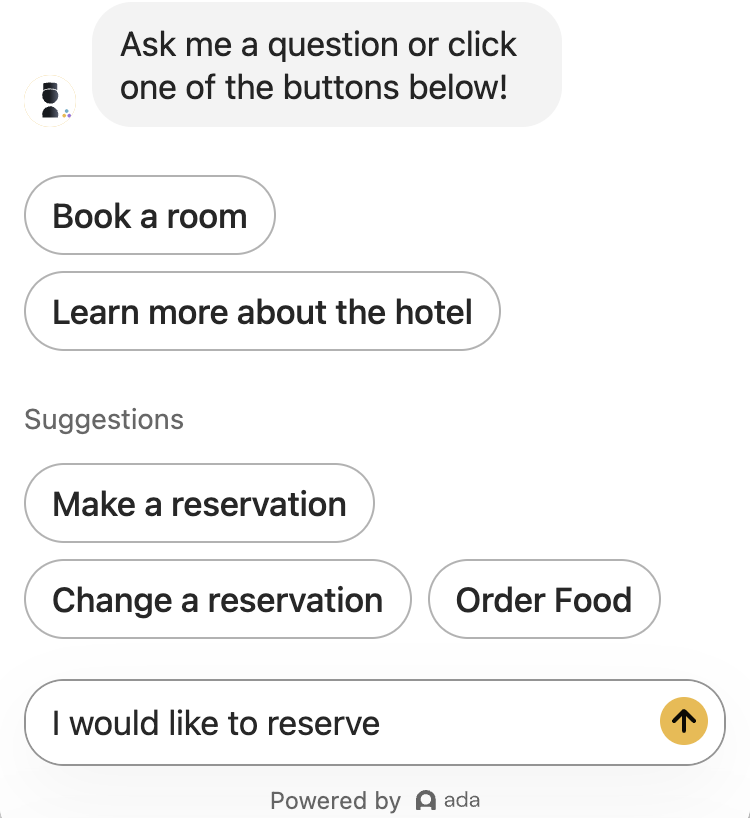 Suggestions proactively offer links to Answers as chatters start typing their question. Ada’s machine learning helps surface suggested paths before the chatter has finished their inquiry, improving their experience by getting them to the Answer they’re looking for more quickly.