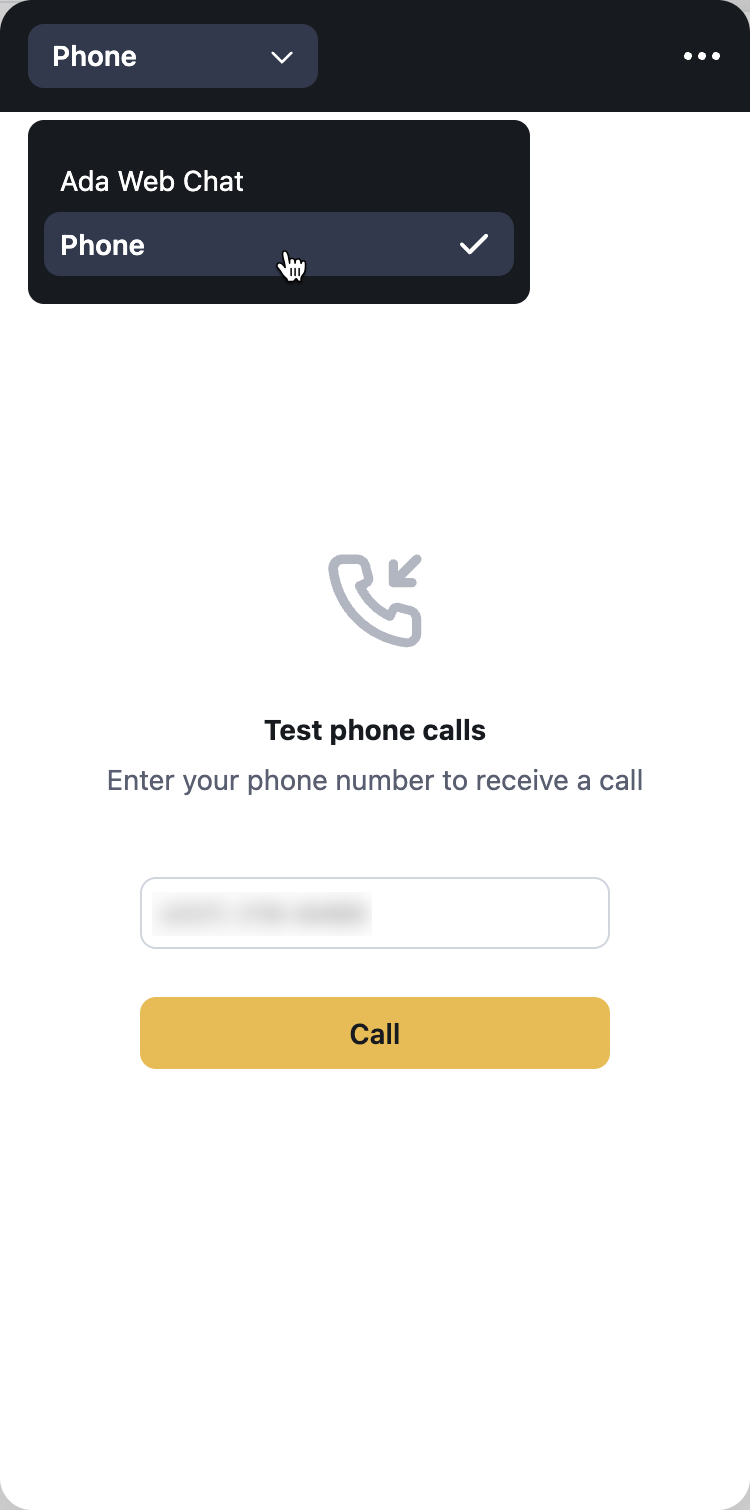 At the top of the test chat window, click the Ada Web Chat dropdown and click Voice.
