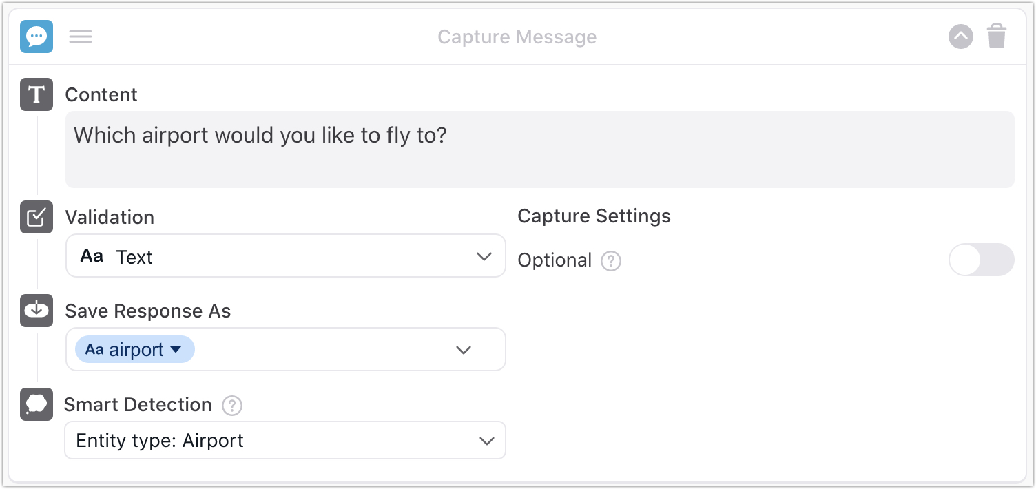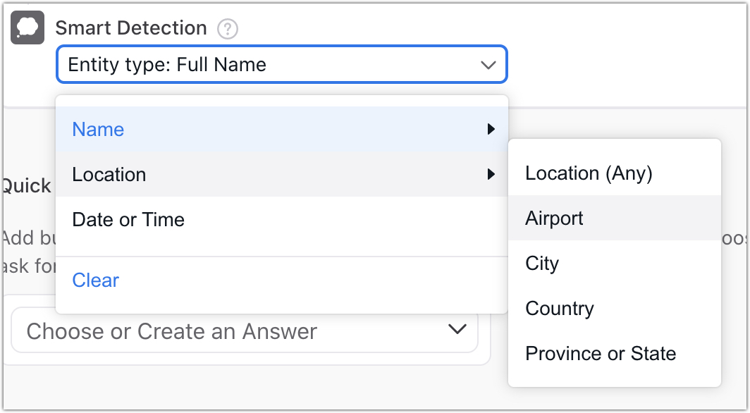 This feature is currently only supported on the Chat platform. In other channels, the chatter experience will not include Smart Detection.