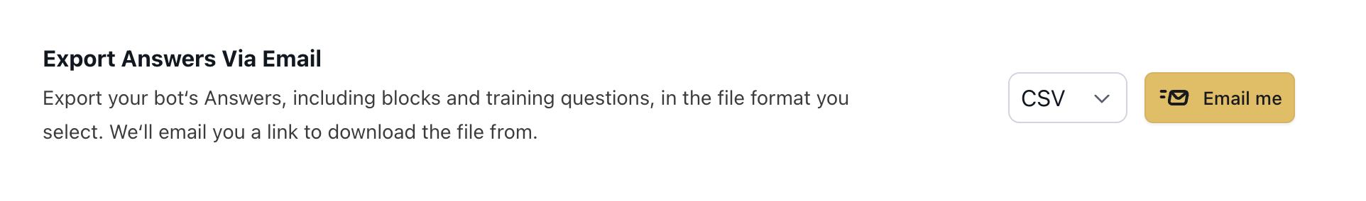 Looking for an overview of your bot’s Answers, including the blocks and text they contain, and their training questions? You can export all of this information into a file from your Ada dashboard. With everything in one place, it makes it easier for you to perform audits on your bot content, share your bot content with translators, or save a snapshot of your bot’s current content.