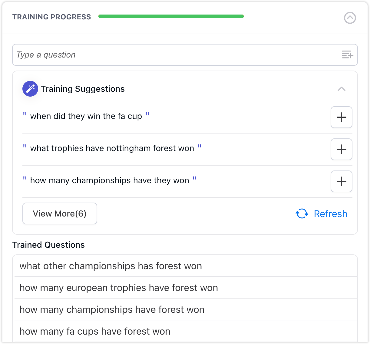 If you trained to an existing Answer, the questions appear in that Answer’s training list.