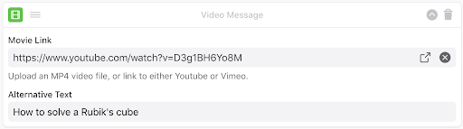 Like the Picture block, the Video block allows you to link to a video or upload it directly. You can either upload an MP4 or use a YouTube or Vimeo link!