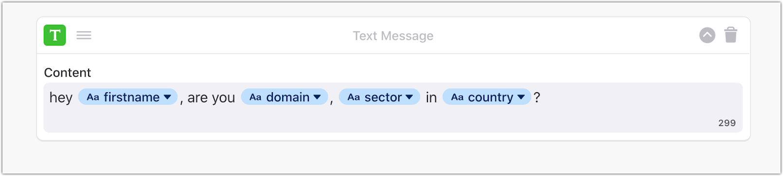 Drag in a text block, and use the variables that you just assigned to the Clearbit outputs.