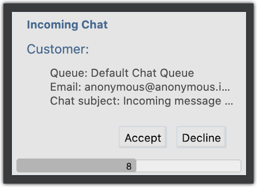When the chat is assigned to an available agent, the agent’s name and Oracle avatar image (or default avatar if a personal one has not been set) will be provided to the chatter to identify who they are chatting with.