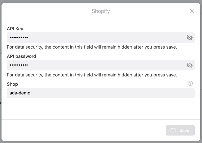 Click Save. This would successfully connect your Shopify account with your Ada bot.