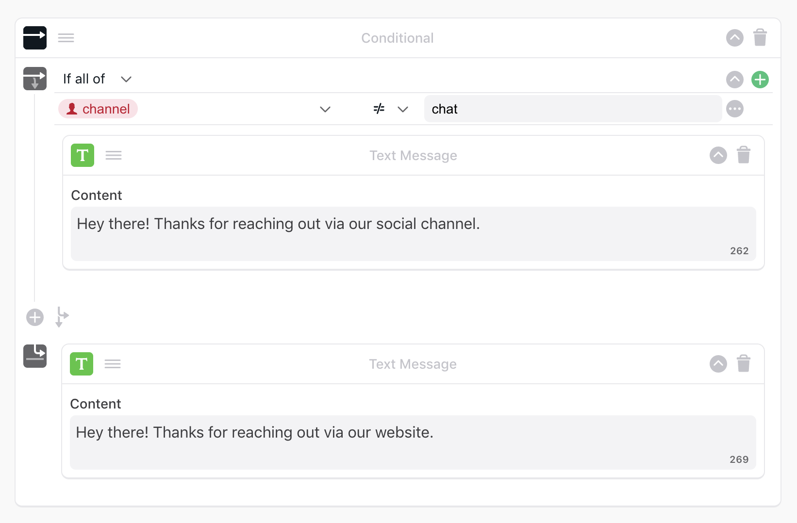 To ensure the chat experience is not affected by unsupported blocks, a fallback flow must be created for incompatible channels using channel variables.