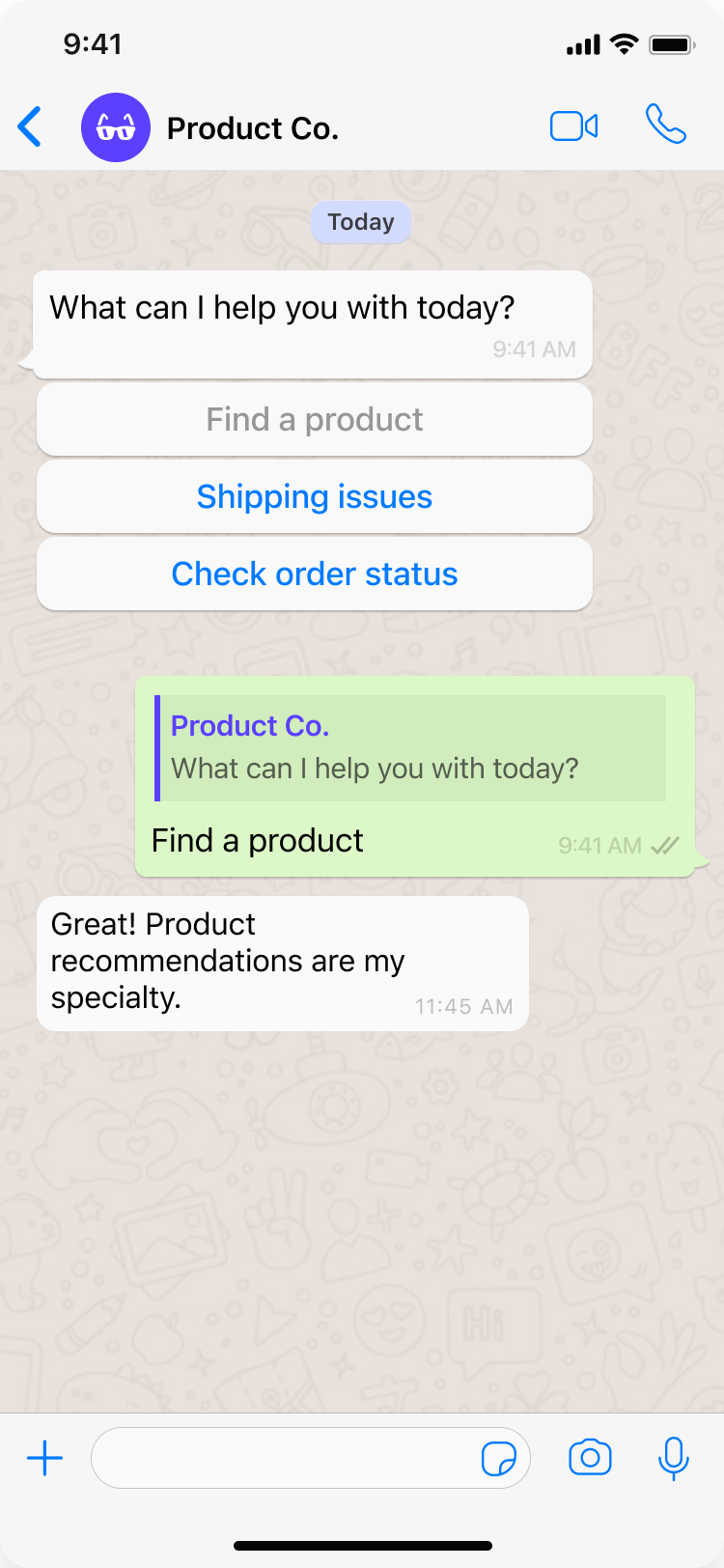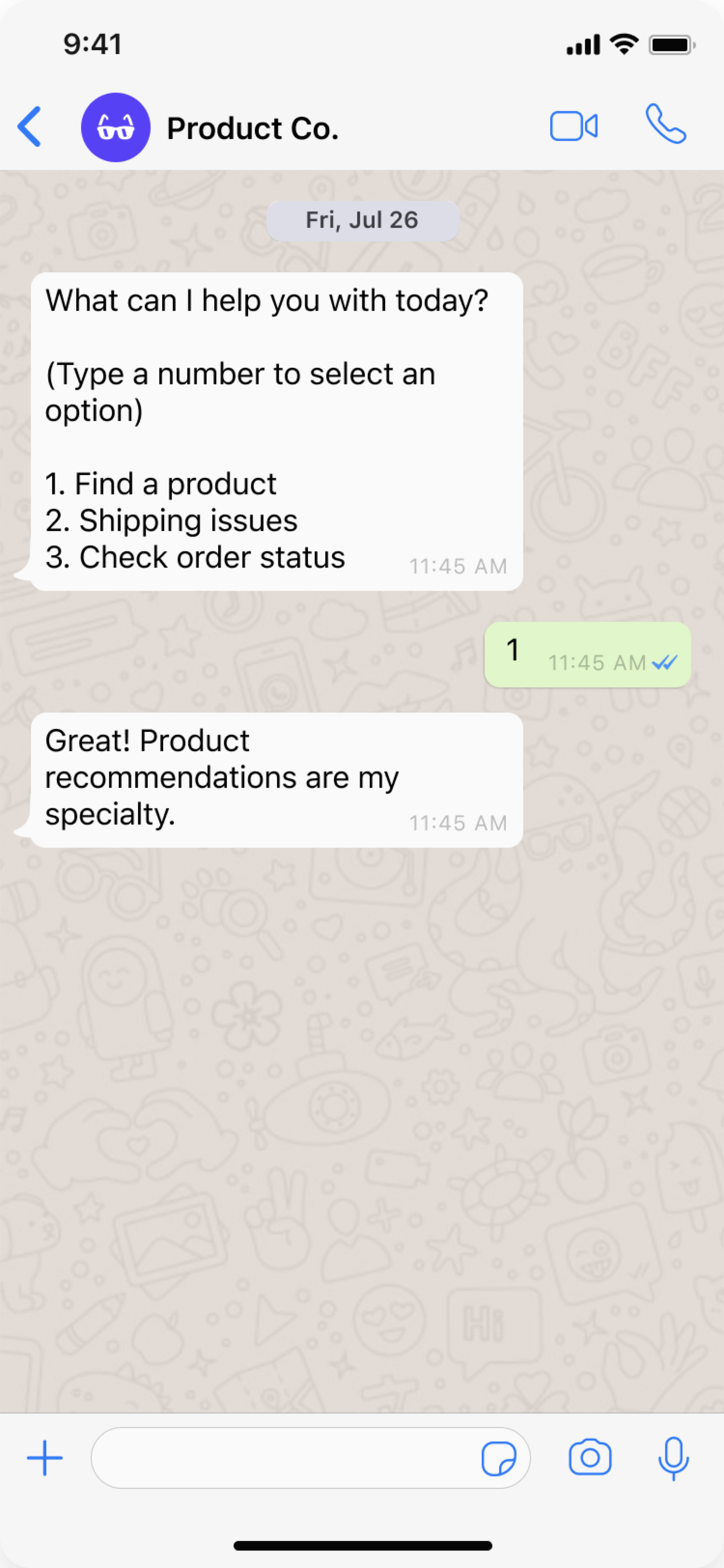 If the quick reply options don’t meet the above criteria, instead of being able to select a reply from a set of buttons, chatters see a message containing the options as a numbered list, and can type a number to select the corresponding option.
