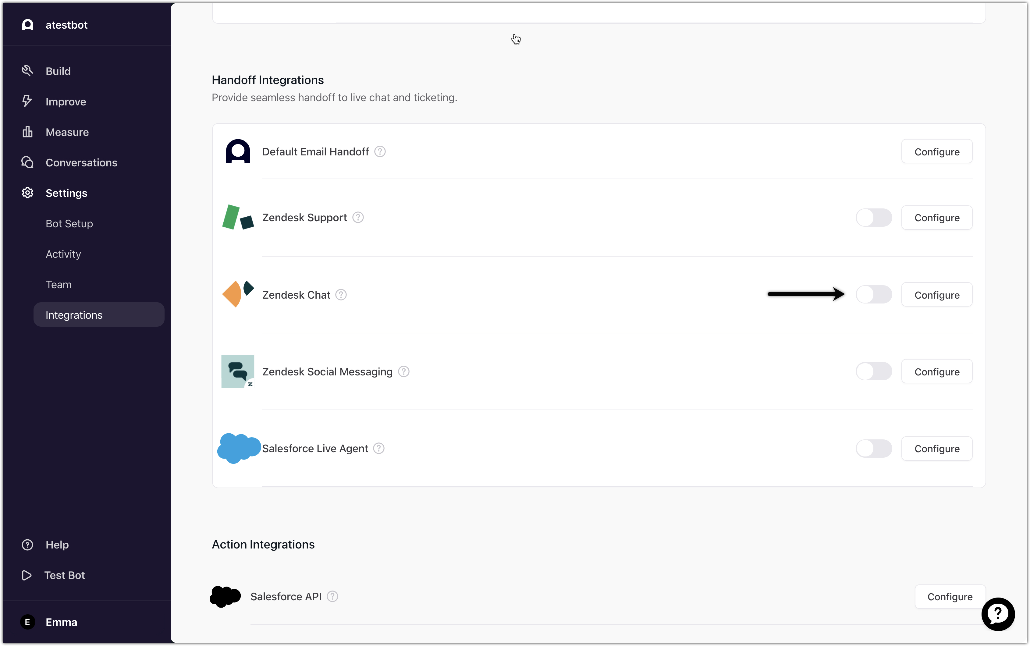 Log into Zendesk Chat as the bot user account. We highly recommend you create a brand new bot user account, with an email address that isn’t tied to one specific person in your organization. This will ensure no changes will be made to the Bot Agent that could otherwise disrupt the integration.