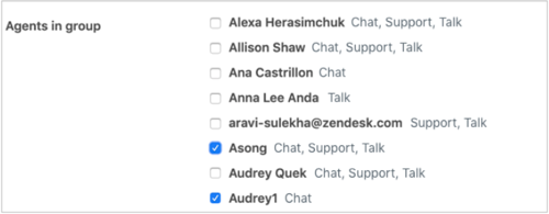 If you are adding a Zendesk Agent Workspace group, you must ensure that chat has been enabled for the group in order for it to appear.