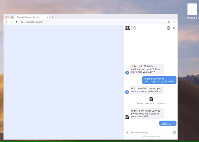 With Transcript Summaries, Ada can automatically attach a summary of a chatter’s conversation to a handoff transcript. This summary helps human support agents quickly determine the reason for the escalation.