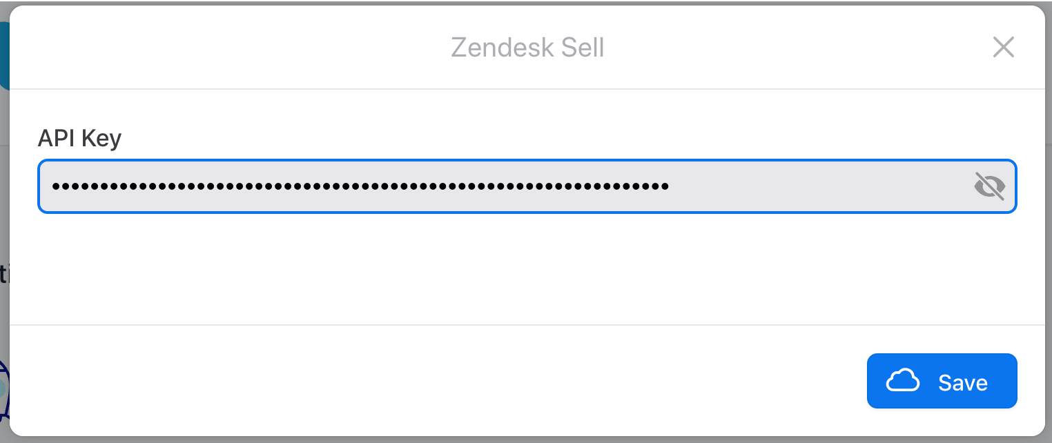 Enter your Zendesk Sell access token in the API Key field, then click Save.