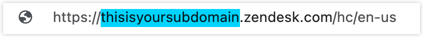 If your organization uses a custom domain name for your knowledge base URL and not the default Zendesk subdomain, you’ll need to find your actual subdomain to complete the suggested article configuration steps.
